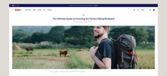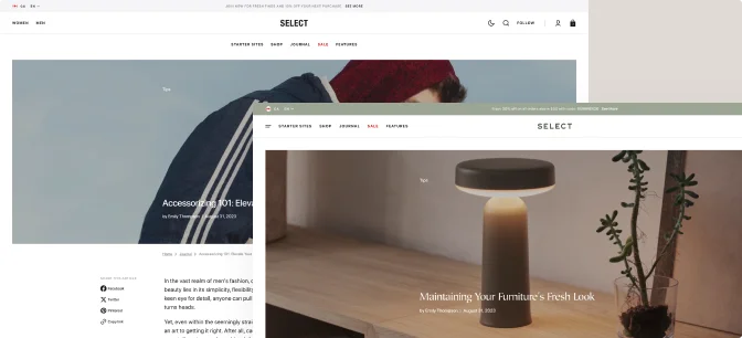 Empower your store with a voice through our integrated blog pages — connect with your customers, share your expertise, and build a loyal community while driving traffic and enhancing your SEO. Turn content into commerce with Select.