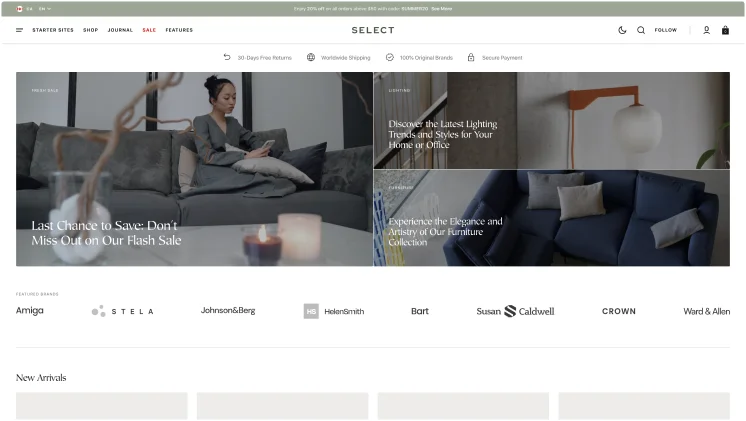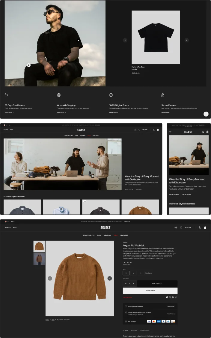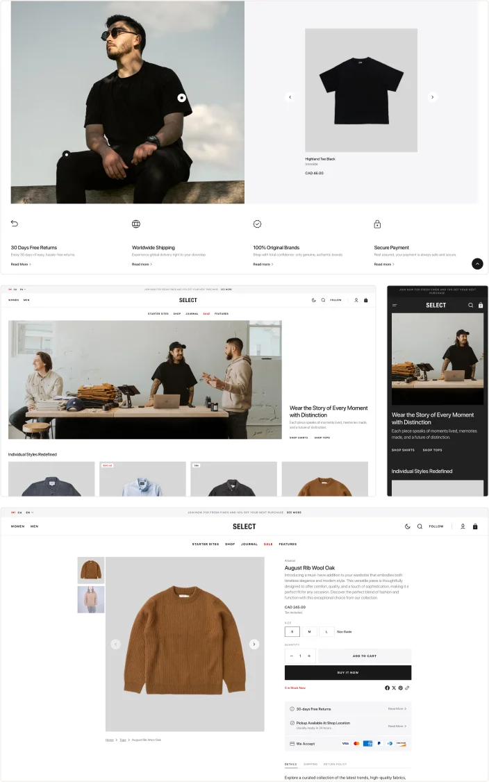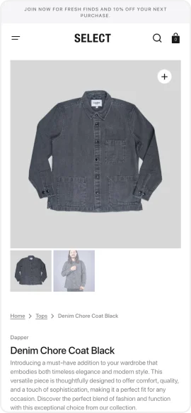 Select delivers the highest standard with flawless performance that keeps your Shopify store running without interruption. From the first click to the final checkout, Select delivers a smooth user experience.