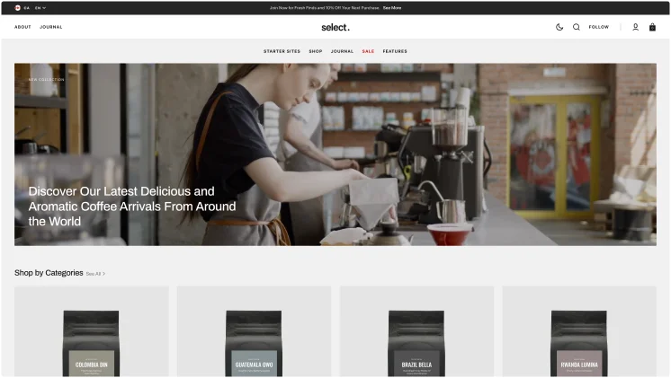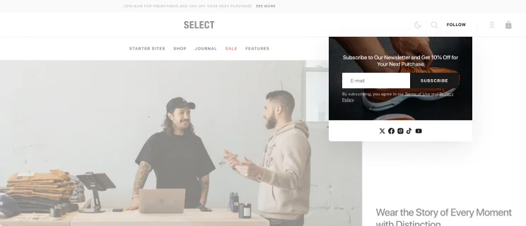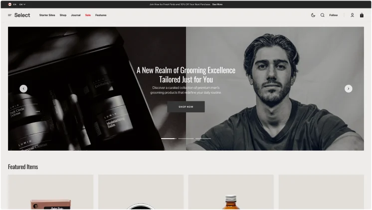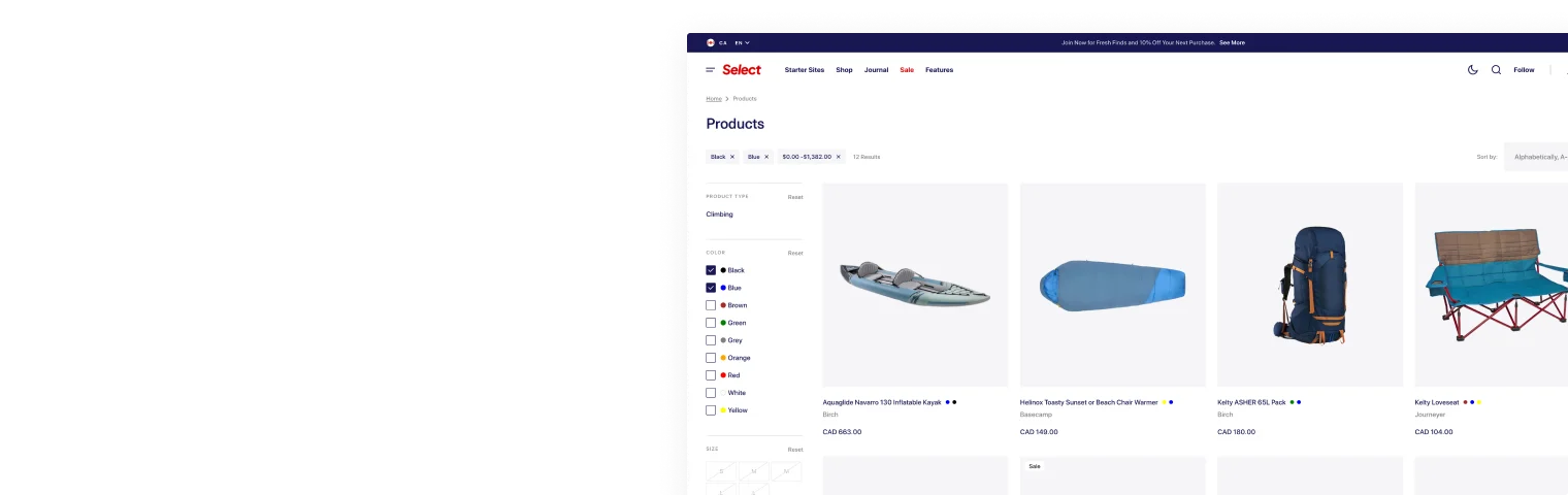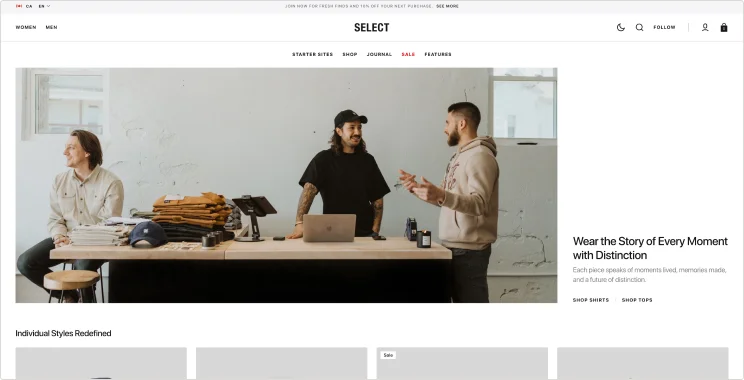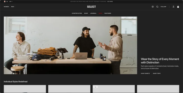 Select theme is a great solution for small and large shops, offering high functionality and advanced features to build a scalable, high-converting site.