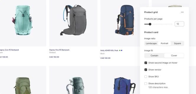 Select a grid layout to showcase multiple collections with product images and descriptions, offering a quick and easy overview.