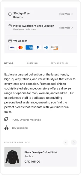 Access premium functionality and an intuitive interface designed to drive sales and conversions. Benefit from a full suite of customization options, advanced tools, and a user-friendly design for the best eCommerce experience.