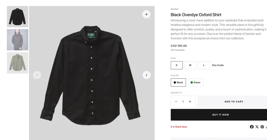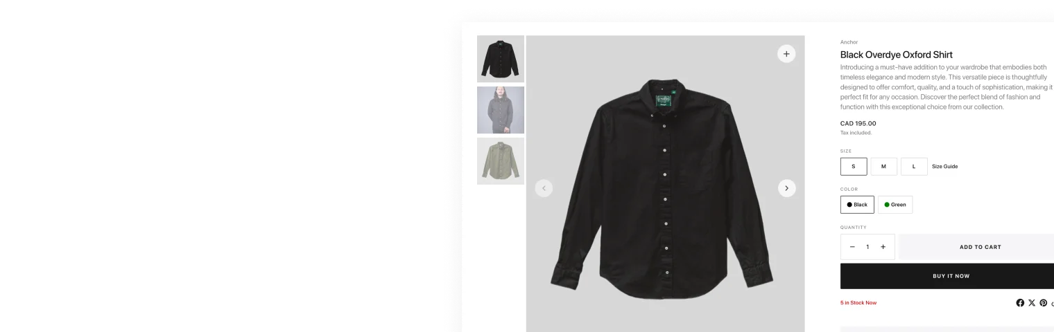 Showcases your products in a slick sliding format alongside thumbnail previews that customers can easily scan and click through.
