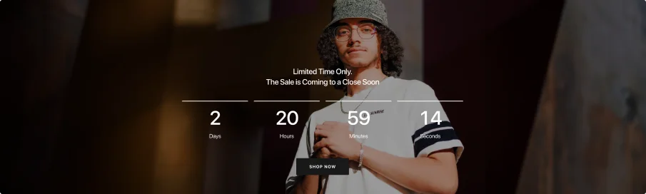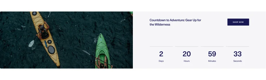 A countdown with a vibrant background, eye-catching text, and a compelling button designed to drive more sales.